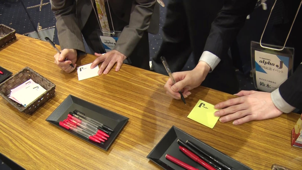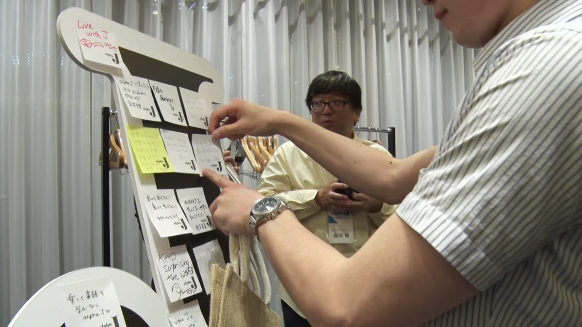パネルディスカッションの後は、立食形式の懇親会。会場には「Alpha J」の1面を模した顔出しパネルや、頭文字がJで始まる景品が当たる回転式抽選器などユニークなアトラクションも並ぶ中、参加者たちが交流を深めた。「Alpha J」の姉妹紙「Alpha」の変遷を紹介するパネルも設置され、熱心に見入っている参加者もいた。そして、今回の創刊イベントに足を運んだゲストから、本紙読者への直筆メッセージが寄せられた。「英語がわかれば世界がわかる! Alpha Jで楽しく学習しましょう」「自然で新鮮なニュース英語が月2回楽しめるAlpha Jで世界に視野を広げましょう」「Keep on learning! And your dreams will come true!!」など、これから世界へ羽ばたいていく若い読者への力強いメッセージが贈られた。